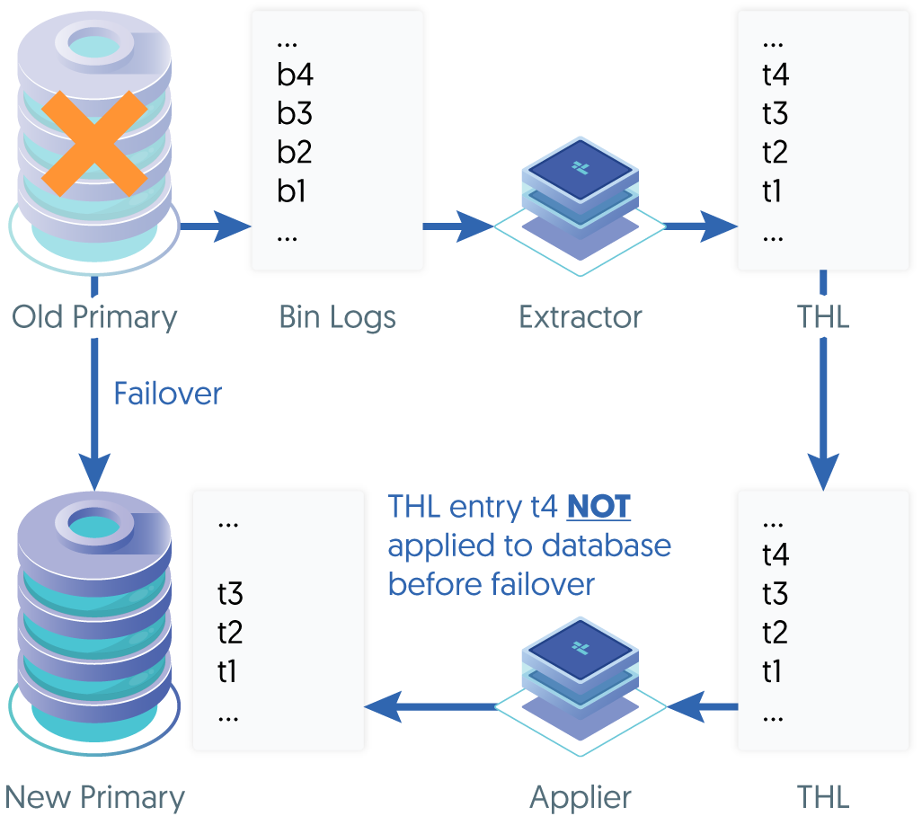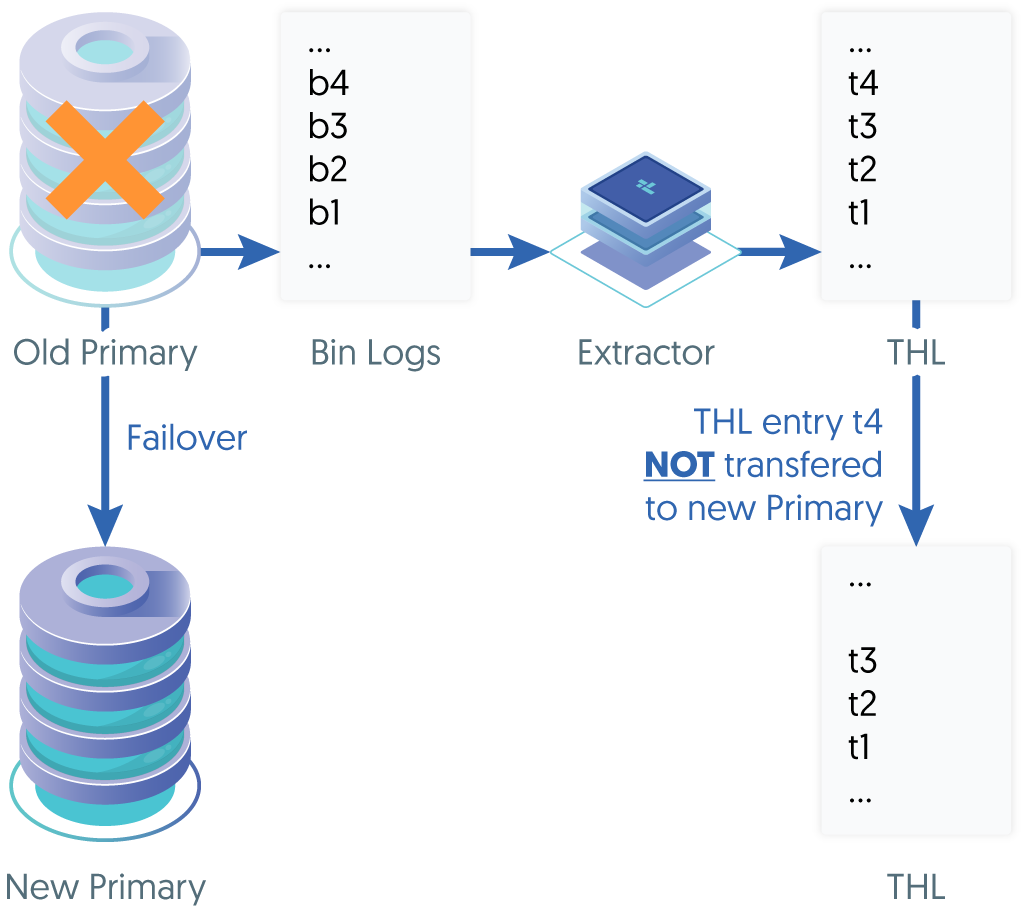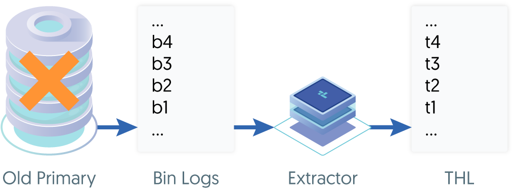Scenario 1 - There are orphaned MySQL binary log events on the old Primary that were not extracted into THL before a failover occurred.